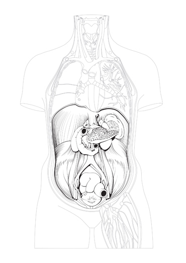 Line drawing of human torso & abdomen.
