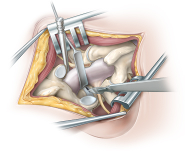 Some steps of a PLIF surgery (Posterior Lumbar Interbody Fusion) for a brochure.